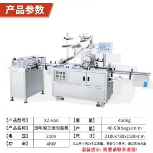 XZ-650包裝機(jī),三維包裝機(jī),全自動(dòng)化操作出膜、切膜、包膜、熱封一次完成。可廣泛應(yīng)用多種產(chǎn)品,適用包裝的產(chǎn)品有食品、撲克牌、香煙盒化妝品、日用品、文具用品等類型產(chǎn)品。